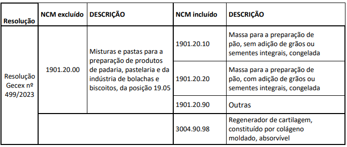 A Resolução Gecex nº 499, de 21 de julho de 2023, divulgou a alteração na tabela de NCM com efeitos a partir de 01/11/2023.